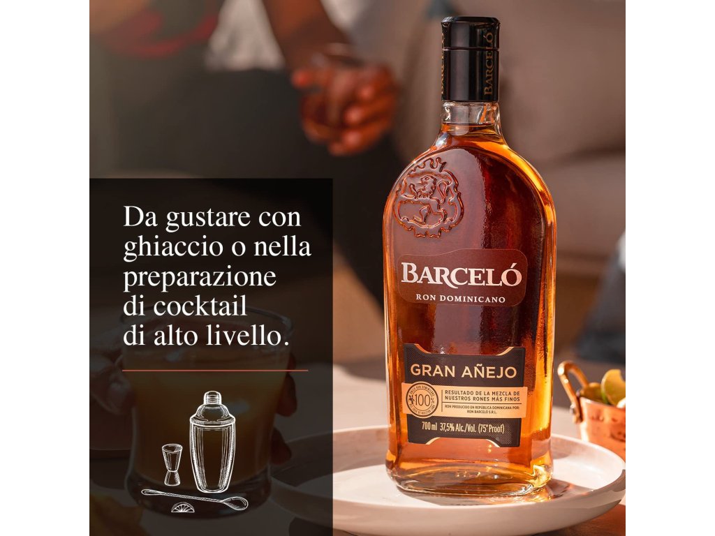 Vynikající směs skvělých dominikánských rumů zrající déle než čtyři roky v dubových sudech. Ron Barceló Gran Anejo se vyznačuje bohatou zlatě jantarovou barvou. Nádherné aroma se vyznačuje citrusovými a broskvovými tóny s dřevitou příměsí. Pro jemnou, vyváženou zakulacenou chuť jsou příznačné ovocné příměsi. Měkký závěr je doplněn smetanovými dozvuky.