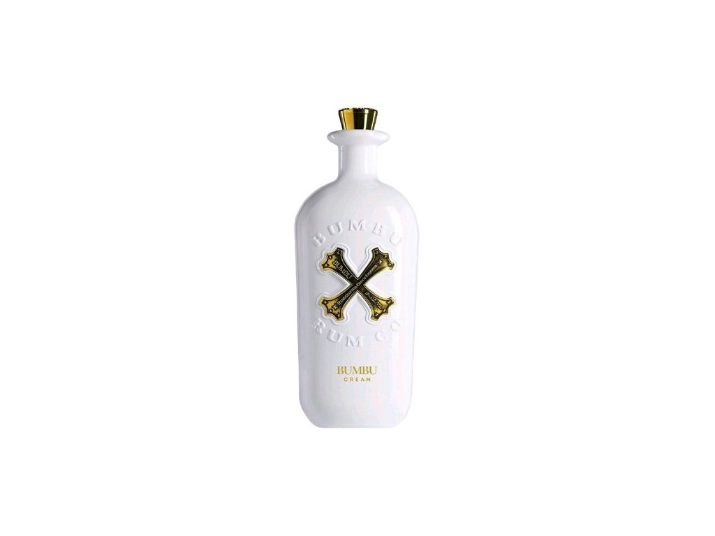Láhev Bumbu Cream je nádherně malovaná bílá se zlatými a černými uměleckými prvky se zlatě zbarvenou zátkou s vyraženým znakem Bumbu „X".