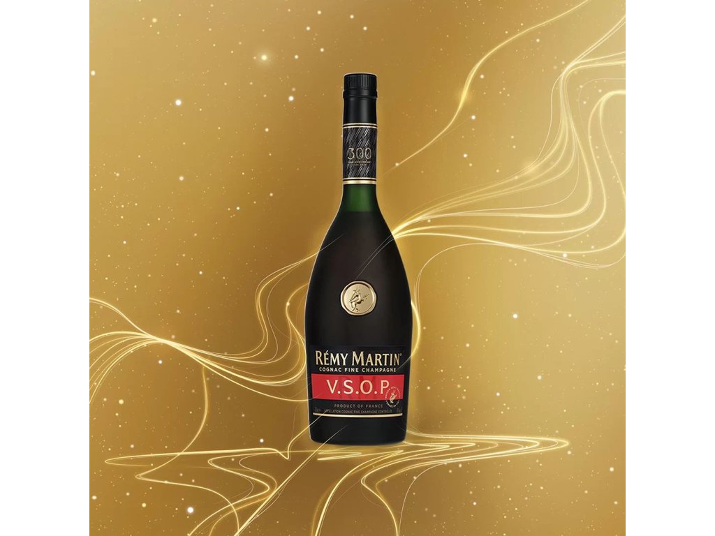 Rémy Martin slaví 300. výročí svého založení tímto VSOP, který je prezentován v černé láhvi s červenými a zlatými detaily na vizuáli.