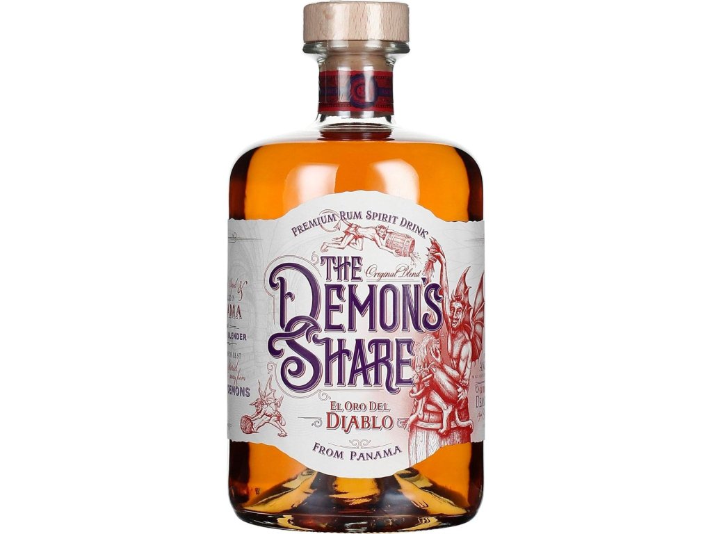 Demon's Share 3y - určitě jste již slyšeli pojem Angel's Share neboli andělská daň, a to v souvislosti s podílem destilátu, který se ztratí odpařováním během zrání v sudu. Možná jste také slyšeli, že si andělé tento podíl nechávají pro sebe a zbytek nechávají démonům. Zatímco andělé ale pití moc neholdují, démoni, minimálně v tomto ohledu, rozhodně ví, co je dobré. Demon's Share neboli démonská daň představuje tu nejlepší část rumu, který vyrábí veselí démoni Panamy. Jde o rum z melasy, který vzniká v Panamě. Destilace probíhá v destilačních koloně a poté je rum uložen na 3 roky do znovu vypálených sudů z amerického dubu. Následně je infuzováno pomerančovou kůrou, hřebíčkem a vanilkovými lusky.