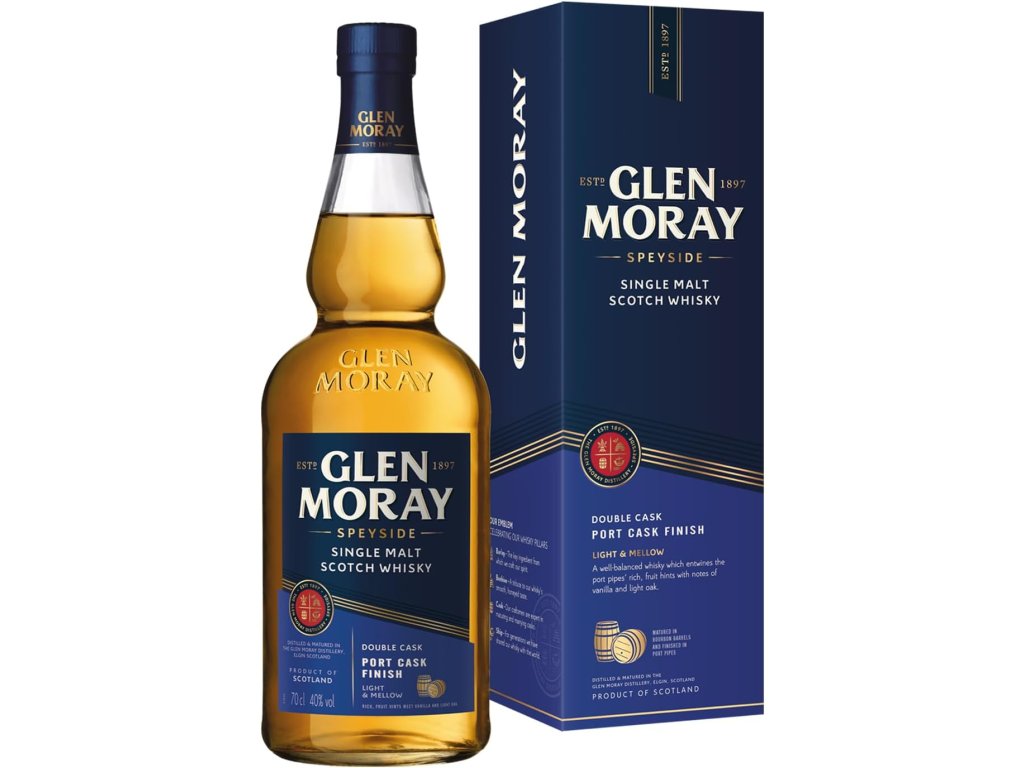 Glen Moray Elgin Classic Port Cask Finish je whisky zrající v kombinaci sudů po bourbonu a portském víně, což jí dodává výrazné ovocné tóny. Vůně této whisky nabízí kombinaci vanilky, dubu, sladkého ovoce a karamelu. Na patře je whisky jemná a sladká, s náznaky červeného ovoce, koření a lehkého dubového závěru. Tento výrazný, ale vyvážený profil činí Glen Moray Elgin Classic Port Cask ideální pro samostatné popíjení nebo jako součást whisky koktejlů