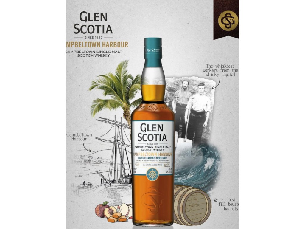 Glen Scotia Campbeltown Harbour je příjemná skotská whisky s vynikající vůní a ještě lepší pronikavou chutí kouře, mořského vánku, pepře a rašeliny. Je vyrobena na poctu ikonického přístavu Campbeltown, známého jako Victorian Whisky Capital of the World, přes který v minulosti proudily whisky do širého světa. Zrála v exkluzivních prvo-plněných ex-bourbon sudech, které jí dodaly harmonický charakter plný vyzrálého ovoce, koření, mořského vánku a kouře. Na závěr byla naplněna do lahví se 40 % obsahem alkoholu.