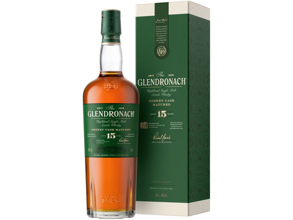 Glendronach 15y je mistrovské dílo mezi single malt whisky, které okouzlí svou bohatou ovocností a hloubkou chutí. Zrání v kombinaci sudů po sherry Oloroso a Pedro Ximenez dodává této whisky jedinečný charakter. Ve vůni objevíte tóny mátové čokolády, sušených fíků a teplého koření, zatímco chuť vás nadchne harmonií třešní maraschino, pražených ořechů a jemnou sladkostí sudu PX. Ideální pro znalce i ty, kdo chtějí objevit něco výjimečného. GlenDronach je ve skutečném stylu Highland: těžký a robustní duch, ideální pro dlouhé období zrání v sherry sudech. V The GlenDronach Distillery pokračovali v tradici zakladatele Jamese Allardice od roku 1826 a zrání whisky v nejlepších španělských sherry sudech Pedro Ximenez a Oloroso z Andalusie. Pokračuje v práci na zvládnutí umění zrání sherry sudů a whisky Highland jsou uznávány pro své syté barvy a bohaté chuťové profily, které sahají od sladkých ovocných chutí, od sudů Pedro Ximenez, až po suché a ořechové tóny, z vynikajících sudů Oloroso. Dobře střežená tajemství hlídá téměř 200 let parlament věží, kteří mají tak rádi The GlenDronach.