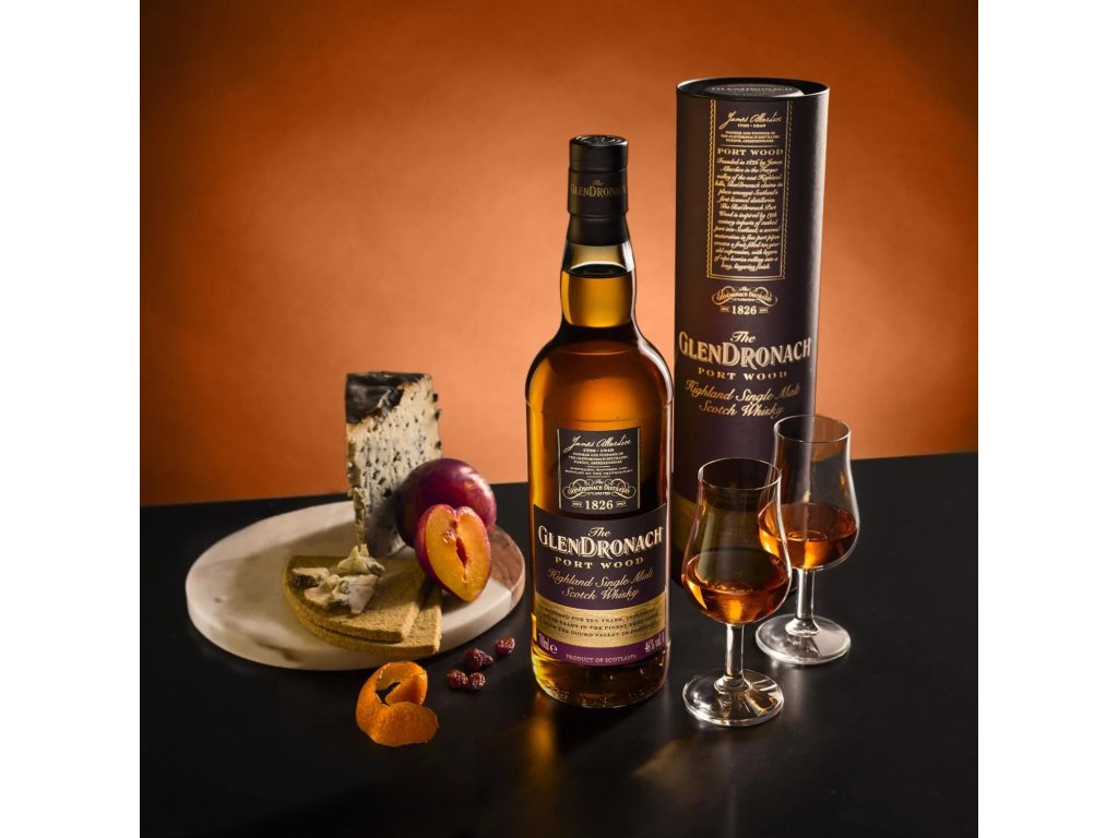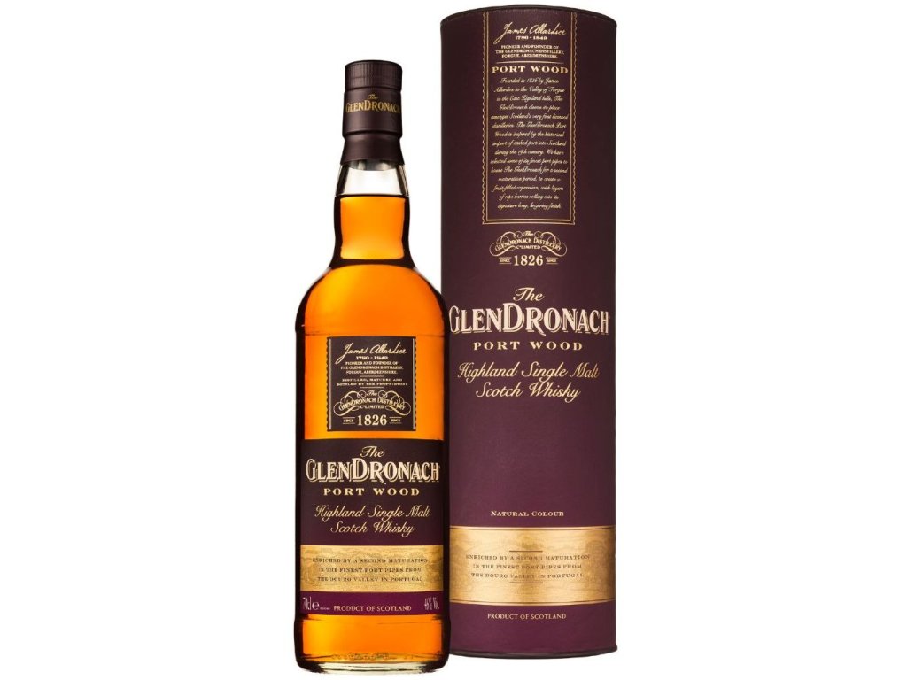 Jednosladová skotská whisky GlenDronach PORT WOOD zraje klasicky v sudech po sherry PX a Oloroso. Poté strávila zrání na 2 roky v sudech od portského vína. Whisky není filtrována chladem a při výrobě není přidáno žádné další barvivo.