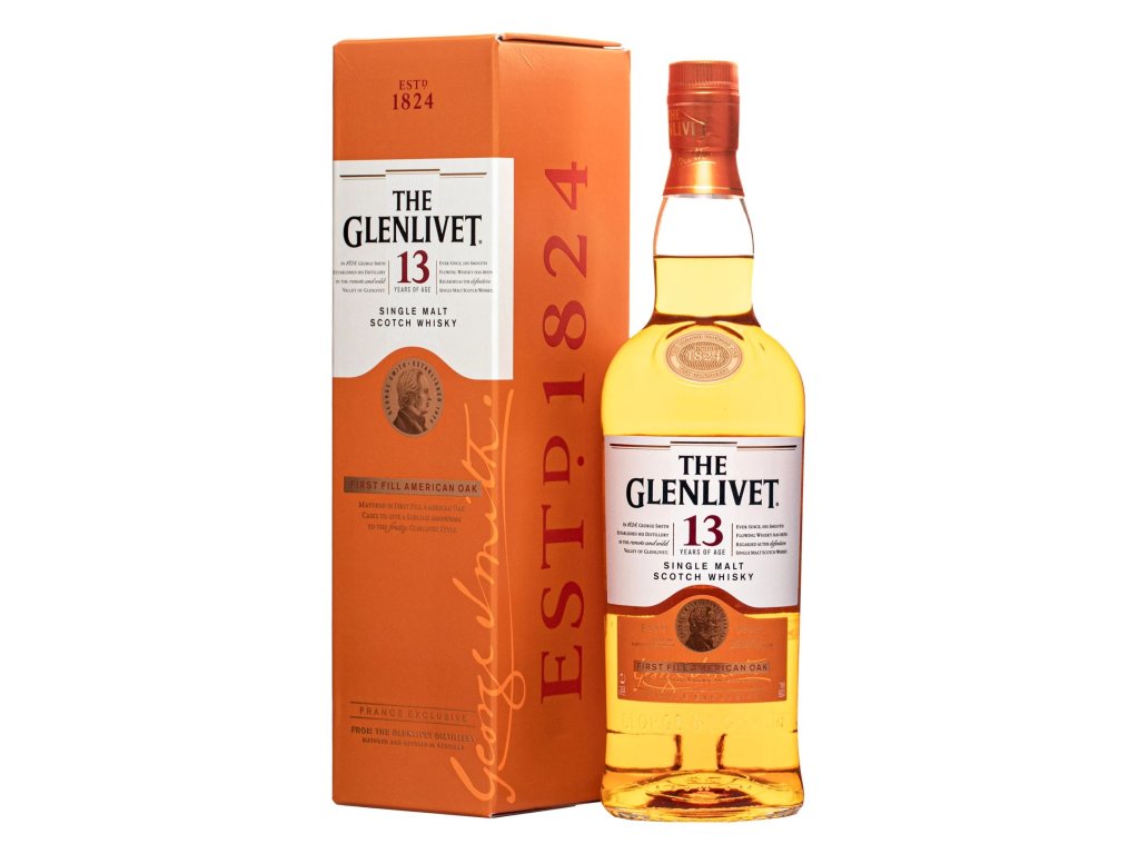 Exkluzivní stáčení - single malt whisky Glenlivet zrála 13 let v prvoplněných amerických sudech Oak.