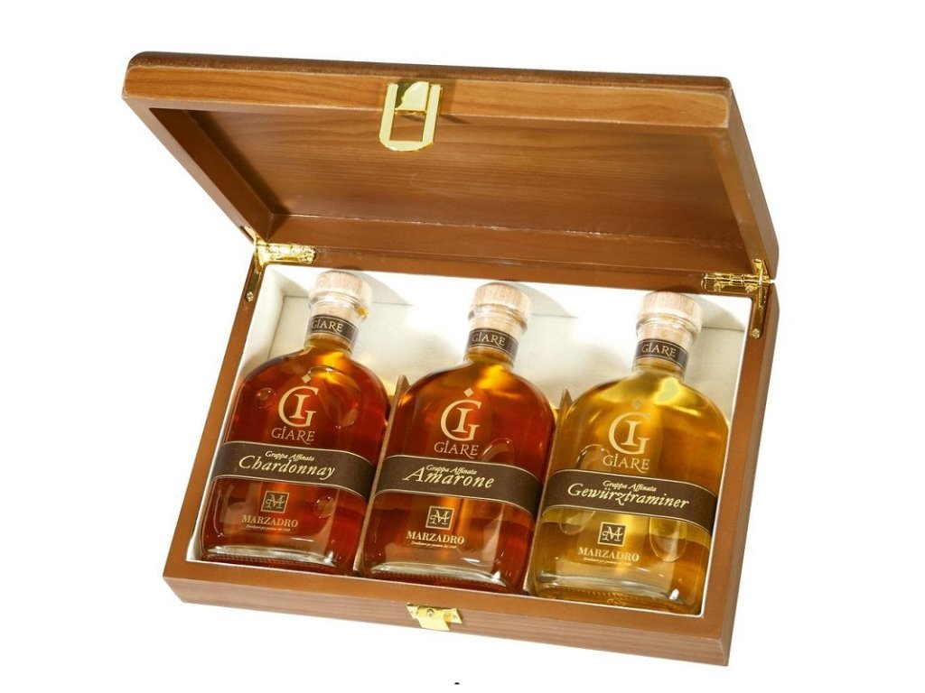 Grappa Marzadro Giare Collezione je speciální kolekce tří různých grappa, které pocházejí z kvalitních hroznů pěstovaných v Trentu. V balení najdete 3 lahvičky po 0,2 l: Amarone, Chardonnay a Gewürztraminer. Každá z těchto variant byla destilována tradičním způsobem v měděných kotlích a poté uložena k dlouhému zrání v dubových sudech. Výsledkem je elegance, bohatost a rozmanité aromatické tóny – od sušeného ovoce a koření až po jemnou vanilku a květinové nuance.