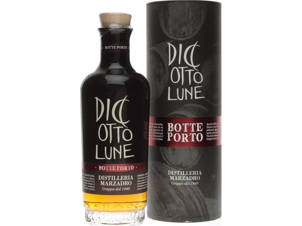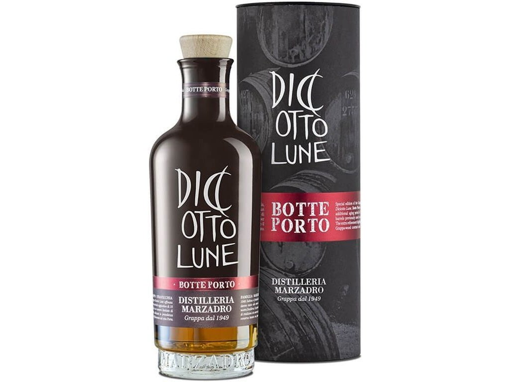 Marzadro řadou Le Diciotto Lune ukazuje, jak moc dokáže ovlivnit konečný charakter grappy závěrečné zrání v různých typech sudů. Porto verze je krásným příkladem toho, jak se italský destilát dokáže obohatit o dotek jiné vinařské tradice.