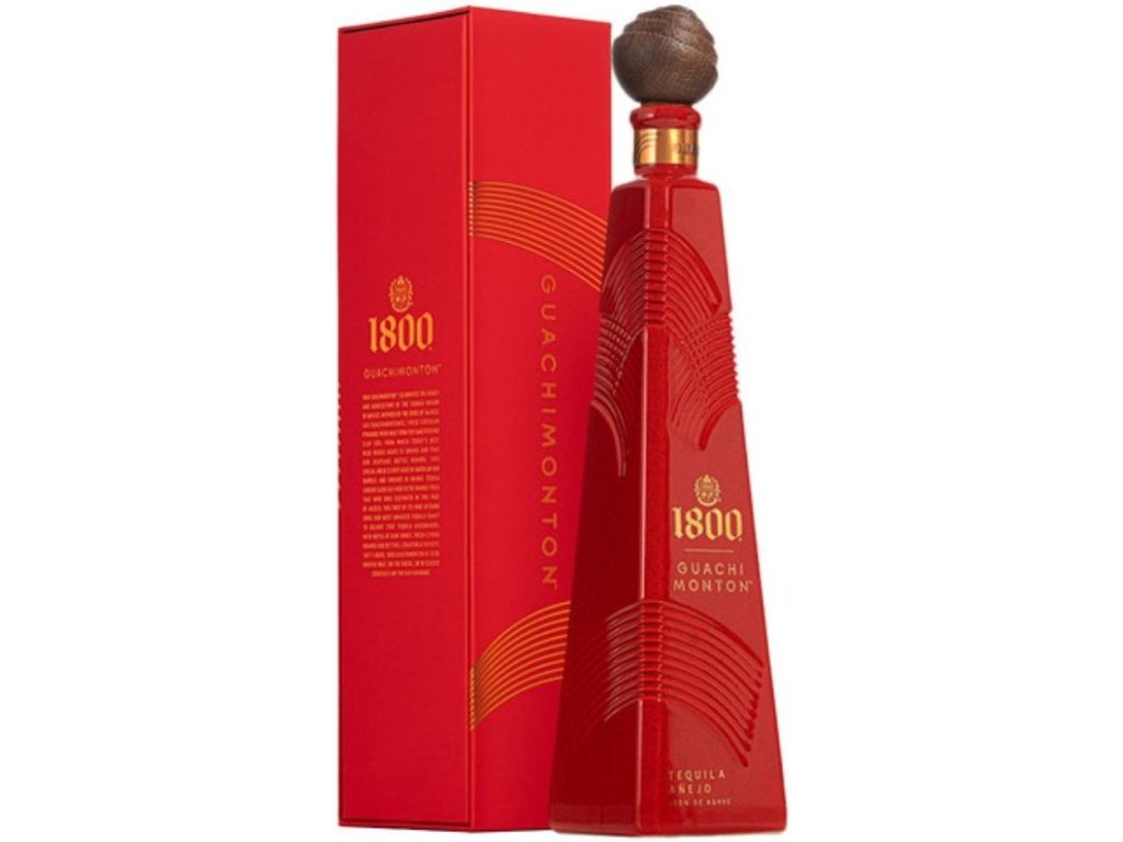 Vyrobeno z nejlepších agáve v této oblasti, vyživovaných prameny a jílovitou půdou s vysokým obsahem železa díky blízkosti sopky. Guachimontón je název odvozený od stromů guaje, které byly sem přivezeny během koloniální éry. Založení v oblasti, která je nyní součástí historie tohoto destilátu, umožnilo Tequile 1800 uznat její dědictví a zemi, kde se zrodily její pyramidy. Láhev Tequily 1800 Guachimontón je mistrně navržena tak, aby napodobovala reliéfy těchto památek a odrážela cykly nekonečného času, a na druhé straně je zde červená barva, která představuje jíl sopečné půdy.