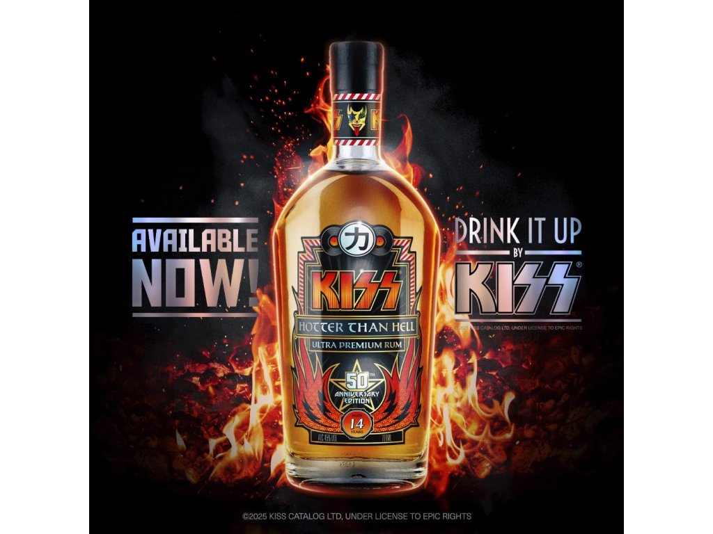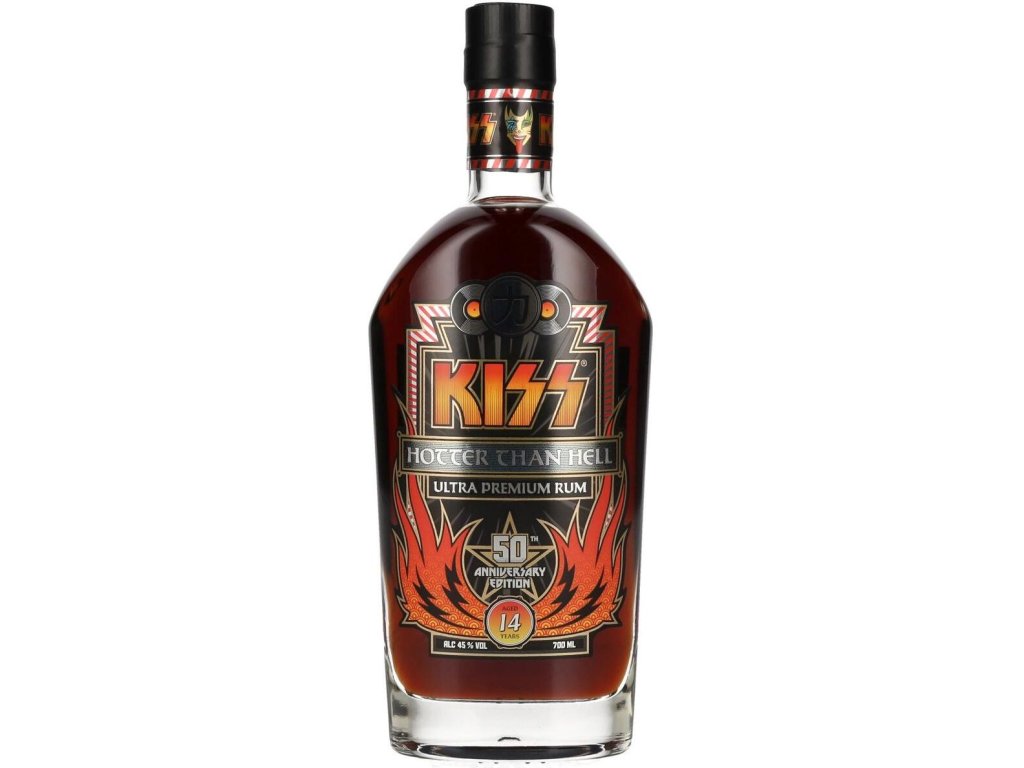 Na oslavu 50 let rockové historie KISS představuje poslední přírůstek do své kolekce rumu: KISS Hotter Than Hell Ultra Premium Rum 50th Anniversary Edition. Tato exkluzivní směs vyzrálá v sudu představuje vyvrcholení kolekce rumu KISS a je poctou ikonickému albu z roku 1974, Hotter Than Hell. Tento rum zrající 14 let v ex-bourbonu a Batavia arack leggers z Guyany a Jamajky se může pochlubit odvážnou sofistikovaností, která odpovídá legendárnímu statusu KISS.