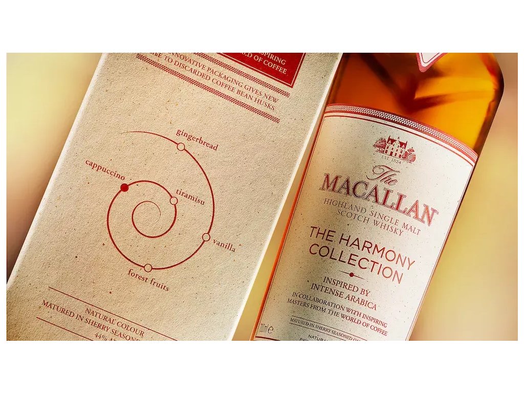 Macallan Inspired by Intense Arabica je oslavou světa kávy a úžasné cesty kávových zrn. Je prezentováno v dárkové krabičce vyrobené z přepracovaných a recyklovaných materiálů. Obal byl odborně vytvořen tak, aby dal nový život slupkám kávových zrn, vedlejšímu produktu kávy, který by jinak byl vyřazen. Červená barva, inspirovaná řemeslem a klíčovými ingrediencemi, byla vybrána pro obal, aby odrážela sytě červenou barvu kávových plodů.