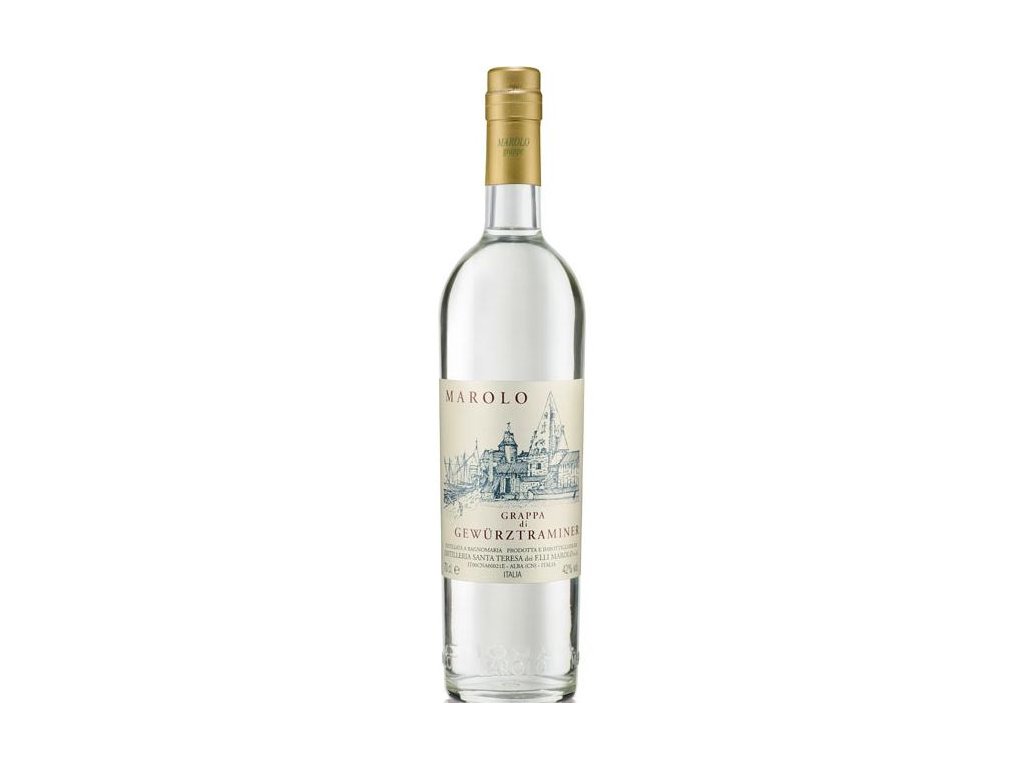 Marolo Grappa di Gewürztraminer představuje esenci aromatických vín, přetavenou do jemného destilátu. Palírna Marolo z Piemontu se pyšní řemeslnou výrobou – po tradiční dvojité destilaci z čerstvých slupek Gewürztraminer (především z Jižního Tyrolska) je destilát ponechán několik měsíců k odpočinku v nerezových tancích, aby získal čistotu a strukturu .