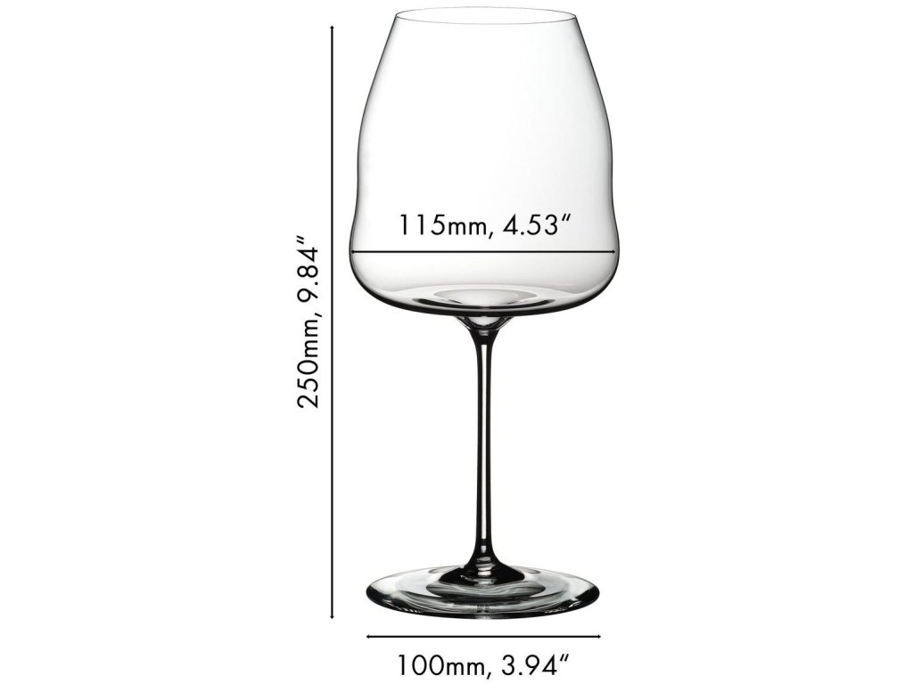Vysvětlení konceptu RIEDEL Winewings: Zvolili jsme ploché a natažené dno s tvarem křídla, abychom zvětšili povrch mezi vínem a vzduchem, což zvyšuje úroveň odpařování a rozvíjí větší intenzitu aroma. Při přiložení hlavy ke sklenici je nos blíže a je vystaven širšímu povrchu vína. Samotné to však nestačilo k plnému vyjádření optimálního aroma každé odrůdy, a proto bylo pro zachycení jemných vrstevnatých aroma nutné zakřivit stěny sklenice a správně kalibrovat otvor každé sklenice s ideálním průměrem okraje.