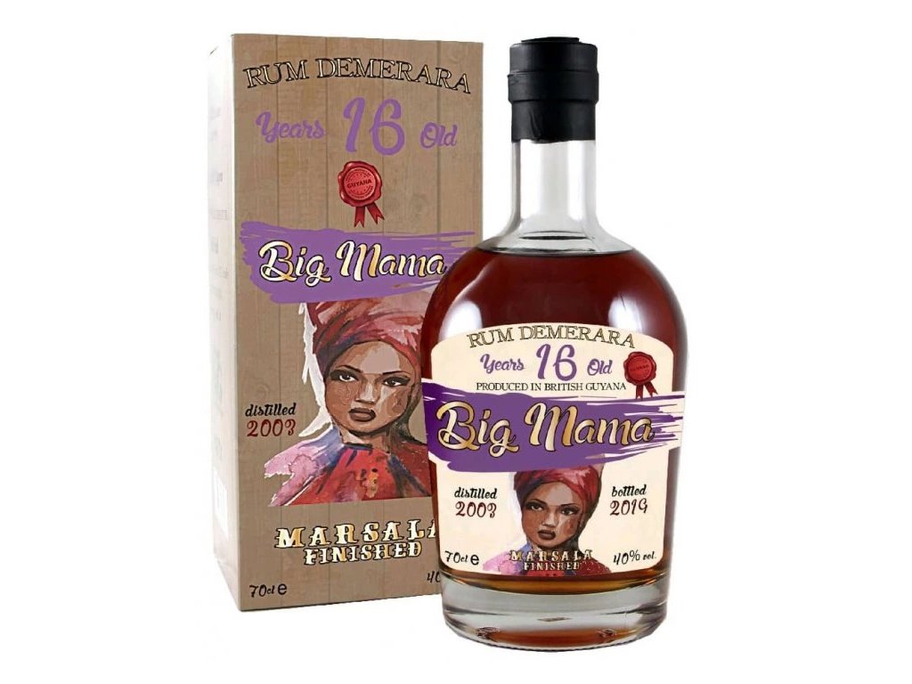 K nim se přidávají ořechové tóny a koření, jako je skořice a hřebíček. Sladké tóny karamelu a vanilky vytvářejí příjemný kontrast.ChuťNa patře se rozvine exploze chutí. Sladkost sušeného ovoce se prolíná s kořenitostí a jemnou hořkostí. Cítíte zde výrazné tóny meruňek, rozinek a exotického koření. Dubové tóny dodávají rumu hloubku a komplexnost. Závěr je dlouhý a příjemně teplý, s dovětkem sušeného ovoce a koření.Doporučené servírováníTento rum si nejlépe vychutnáte čistý v tulipánové sklenici, aby se mohly plně rozvinout jeho aroma. Můžete ho také přidat do koktejlů, kde dodá nápoji exotický a ovocný charakter. Skvěle se hodí k tmavé čokoládě, ořechům nebo sýrům.ZajímavostiZrání v sudech po Marsale: Díky zrání v sudech po tomto sladkém italském víně získal rum jedinečné ovocné a ořechové tóny.Demerara: Rum pochází z oblasti Demerara v Guyane, která je známá svou kvalitní melasou a tradičními metodami výroby rumu.16 let zrání: Dlouhé zrání v sudech dodalo rumu hloubku a komplexnost.Limitрованная edice: Tento rum je vyráběn v omezeném množství, což zvyšuje jeho exkluzivitu.Big Mama Marsala cask 16y je výjimečný rum, který nabízí nezapomenutelný chuťový zážitek. Jeho komplexnost a bohatství chutí ho předurčují pro milovníky kvalitních rumů, kteří hledají něco opravdu speciálního. O značce Big Mama je značka rumů, které pocházejí přímo z Guyany. Rumy Big Mama jsou známé svou vysokou kvalitou a různorodostí chutí. Díky zrání v různých typech sudů a dlouhé tradici výroby nabízí tato značka širokou paletu rumů pro každý vkus.