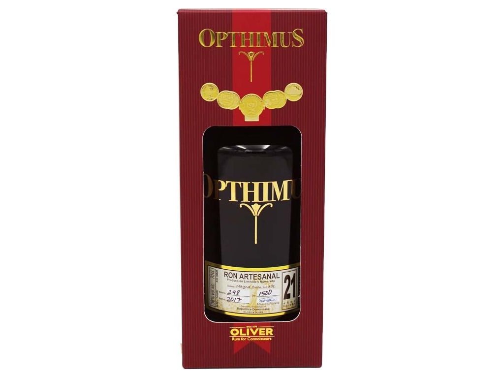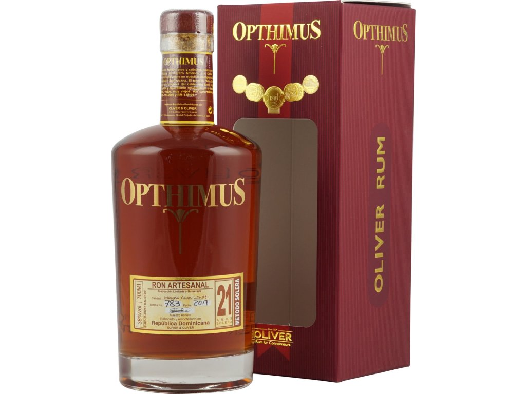 Tento úchvatný rum dominuje svojí intenzivní temně jantarovou barvou se zlatavými odlesky. Opthimus 21 Sistema Solera je úžasně vyladěný rum, který nabízí řemeslnou tradici výrobce Oliver & Oliver z Dominikánské republiky. Zraje v již použitých sudech jak z amerického, tak francouzského bílého dubu. Pestré aroma je plné tónů velmi vyzrálého rumu. Tóny kandovaného ovoce, ořechů, třtinového karamelu a výběrového kakaa se v jemné harmonii střetávají s tóny dubového dřeva, exotického koření a typické vanilky. Elegantní a dobře strukturovaná chuť je vyzrálá, intenzivní a dlouhotrvající.