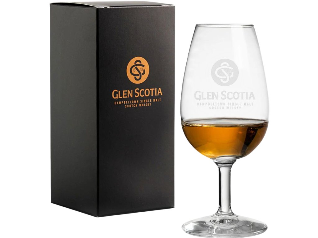 Copita Glen Scotia má vyšší kónický tvar s úzkým hrdlem, které usměrňuje všechny vůně přímo k nosu. Díky stopce držíte sklenici pohodlně, aniž byste se dotýkali těla skla, takže whisky zůstává při ideální teplotě. Je to sklenice, která spojuje funkčnost s elegancí – ideální na ochutnávky i večerní relax.