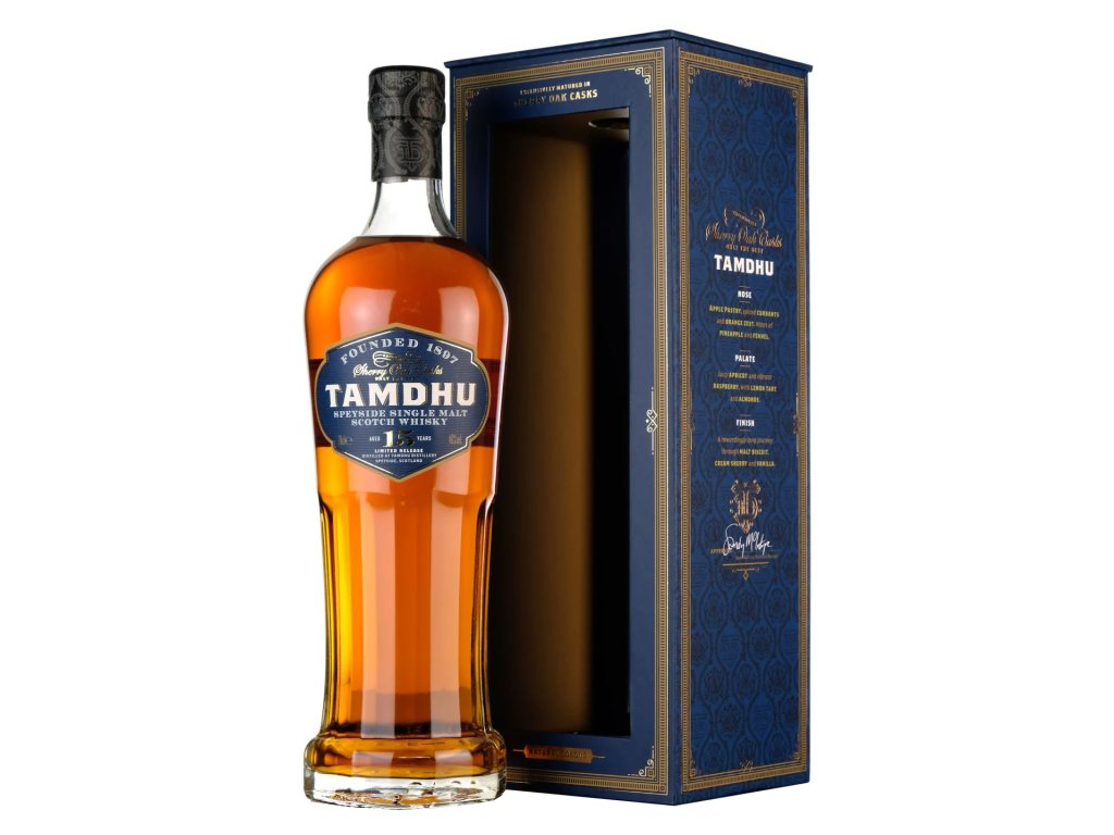 Zraje 15 let v těch nejlepších ex-sherry Oloroso dubových sudech, ze kterých získala neodolatelnou chuť sušeného ovoce, hřebíčku, dubu, kůže, pečiva a čokolády. Destilérka Tamdhu byla založena v roce 1879 na břehu řeky Spey. Od té doby se každá whisky vyrábí se stejnou péčí - počínaje vodou čerpanou z jejich vlastních pramenů.