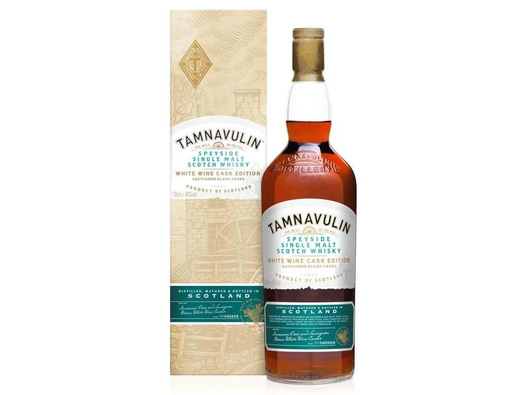 Whisky Tamnavulin White Wine Cask zraje v sudech z amerického bílého dubu a poté se dotváří v sudech od bílého vína Sauvignon Blanc.