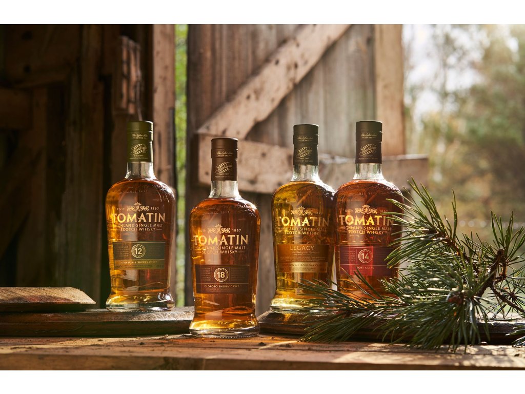 Tomatin je prémiová skotská jednosladová whisky zrozená v srdci skotské Vysočiny, nedaleko města Inverness. Palírna Tomatin byla oficiálně uvedena do provozu v roce 1897, máme však mnoho dobrých důvodů věřit, že whisky se zde načerno pálila mnohem dříve. Historie ilegálního pálení se v tomto kraji datuje až hluboko do 17-tého století. Samotný název Tomatin v gaelštině znamená „Kopec porostlý jalovcovými keři“. Jalovcové dřevo bylo velmi populární mezi ilegálními výrobci whisky, neboť při spalování prakticky nekouřilo. V areálu palírny pak dodnes stojí budova známá jako “The Old Laird’s House”, ve které si podle dostupných záznamů doplňovali svoje „flasks“ honáci dobytka. Dnes patří Tomatin k jedné z největších destilerií ve Skotsku, jako single malt whisky je však lahvována jen velmi malá část produkce. Při výrobě používá měkkou vodu z Alt-na-Frith, destilace probíhá samozřejmě v tradičních měděných kotlích. Whisky zraje převážně v sudech po bourbonu a po sherry.