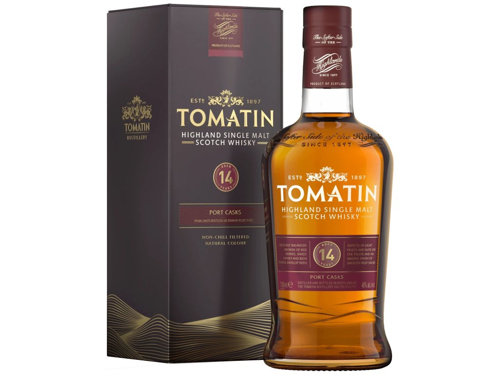 Tomatin je prémiová skotská jednosladová whisky zrozená v srdci skotské Vysočiny, nedaleko města Inverness. Palírna Tomatin byla oficiálně uvedena do provozu v roce 1897, máme však mnoho dobrých důvodů věřit, že whisky se zde načerno pálila mnohem dříve. Historie ilegálního pálení se v tomto kraji datuje až hluboko do 17-tého století. Samotný název Tomatin v gaelštině znamená „Kopec porostlý jalovcovými keři“. Jalovcové dřevo bylo velmi populární mezi ilegálními výrobci whisky, neboť při spalování prakticky nekouřilo. V areálu palírny pak dodnes stojí budova známá jako “The Old Laird’s House”, ve které si podle dostupných záznamů doplňovali svoje „flasks“ honáci dobytka. Dnes patří Tomatin k jedné z největších destilerií ve Skotsku, jako single malt whisky je však lahvována jen velmi malá část produkce. Při výrobě používá měkkou vodu z Alt-na-Frith, destilace probíhá samozřejmě v tradičních měděných kotlích. Whisky zraje převážně v sudech po bourbonu a po sherry.