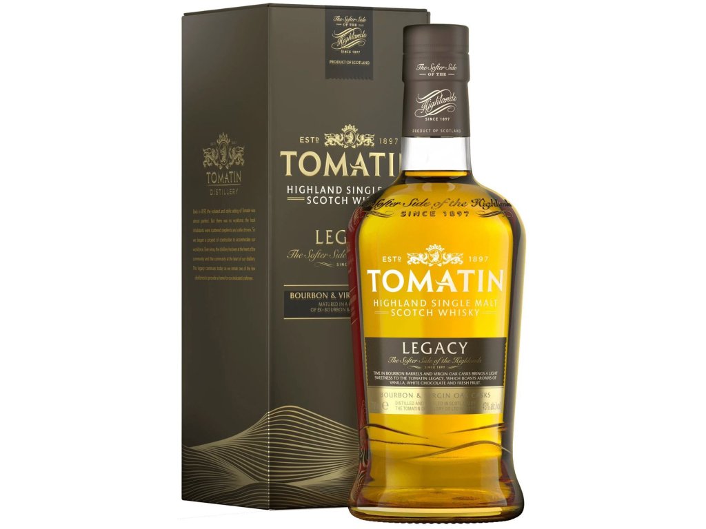 Čistá a cenově přívětivá single malt whisky. Palírna Tomatin byla založena v r. 1897 skupinou podnikatelů z Inverness sdružených v The Tomatin-Spey District-Distillery Co. V r. 1906 tato společnost zbankrotovala, ale již v r. 1909 vznikla Tomatin Distillers Co Ltd a obnovila provoz palírny. V letech 1956-1974 prošla palírna několika rekonstrukcemi, které z ní udělaly největší skotskou palírnu whisky (23 kotlů, kapacita výroby 12 miliónů litrů ročně). V r. 1986 se palírna stala majetkem japonské společnosti Takara, Shuzo & Okura. V současné době palírna pracuje asi na polovinu svého výkonu a většina vyrobeného destilátu se používá do míchaných whisky společnosti Big T, Antiquary a Talisman. Jako single malt se Tomatin stáčí ve věku 12, 18 a 25 let, dříve také 10 a 30 let.