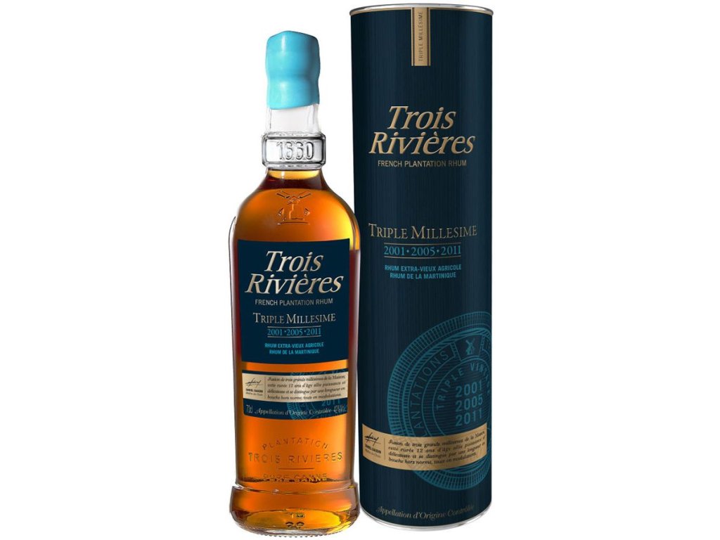 Trois Rivières Triple Vintage, zpracovaný v souladu s pravidly Martinique AOC (Protected Designation of Origin), je nádherně zpracovaný velmi starý zemědělský rum, díky know-how a průkopnickému duchu Cellar Master. Vykazuje pozoruhodnou hladkost ve struktuře a jemné, kulaté patro.